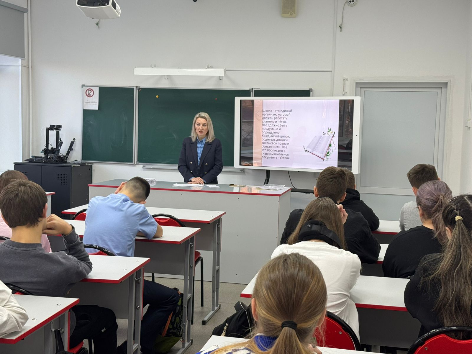 Консультант Надеждинского районного суда Кирилюк М.А. посетила МБОУ СОШ №5 п. Тавричанка и в рамках занятий «Разговоры о важном» провела для учеников 8 классов урок по теме «Права и обязанности учащихся». В ходе открытого урока школьникам рассказывалось о Конституции РФ, как высшем нормативном правовом акте страны, определяющим основные принципы государственного устройства. Разговор шел об иных федеральных и региональных законах, о необходимости их исполнения. Ребята проявили искренний интерес к разъяснениям прав и обязанностей школьников, правилам поведения, последствиям их нарушения, активно принимали участие в разгадывании тематического кроссворда. Консультант суда Кирилюк М.А. пригласила учеников школы посетить Надеждинский районный суд и ознакомиться с процессом осуществления правосудия.